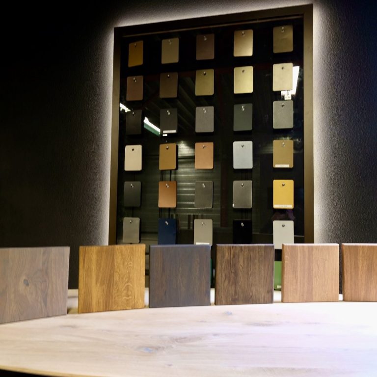 Akkoord? Dan vertalen we uw ideeën naar een ontwerp op maat en voeren we de definitieve meting uit. In onze werkplaats start vervolgens de productie van uw deur, volledig afgestemd op de gekozen stijl en afwerking.